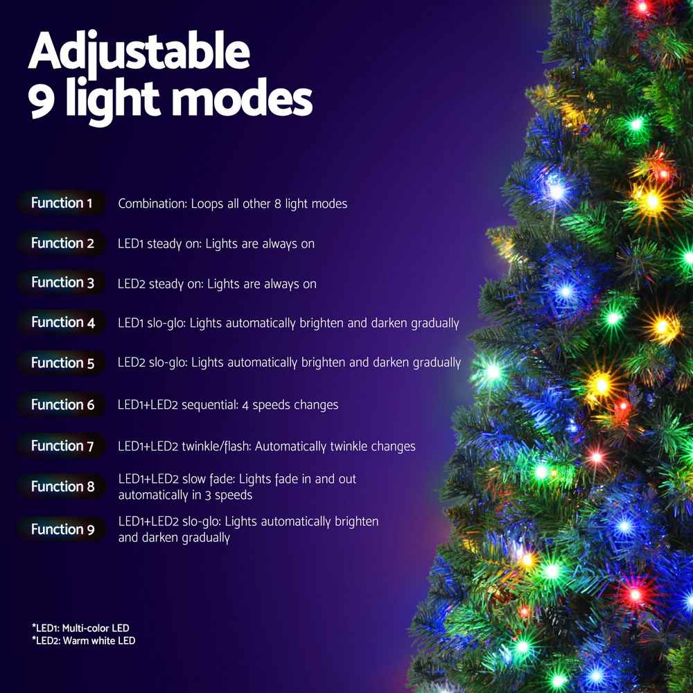 Say goodbye to tangled string lights. This pre-lit Christmas tree comes with 200 multi-colour LED lights already woven through the branches, ready to shine straight out of the box. Choose from 8 adjustable lighting modes – from steady glow to twinkling combinations – to suit your festive mood or party theme.