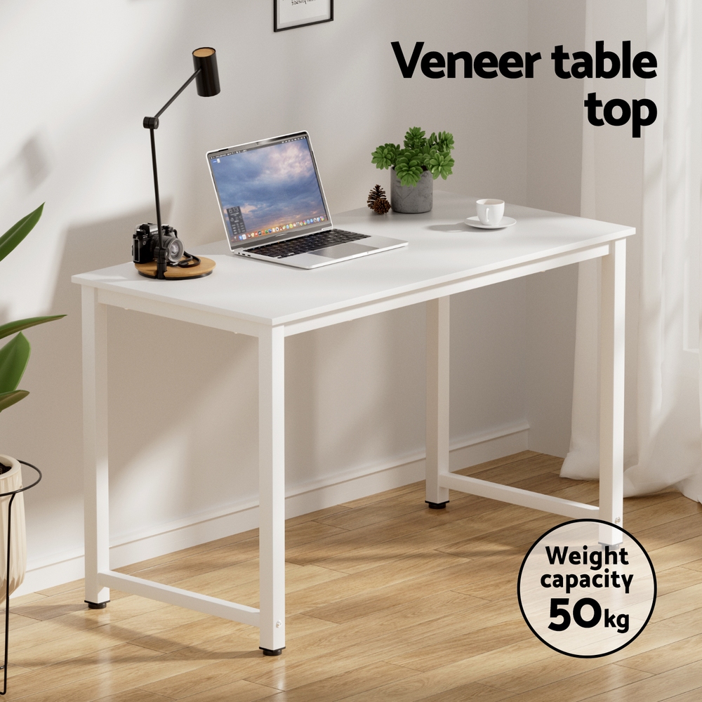 The modern computer desk features a wide 120cm desktop made from durable particle board, giving you plenty of space for your computer, documents, or creative projects. Supported by a sturdy metal frame, it offers excellent stability while the anti-scratch feet protect your floors. The smooth edges and minimalist design allow it to blend effortlessly with any interior style.