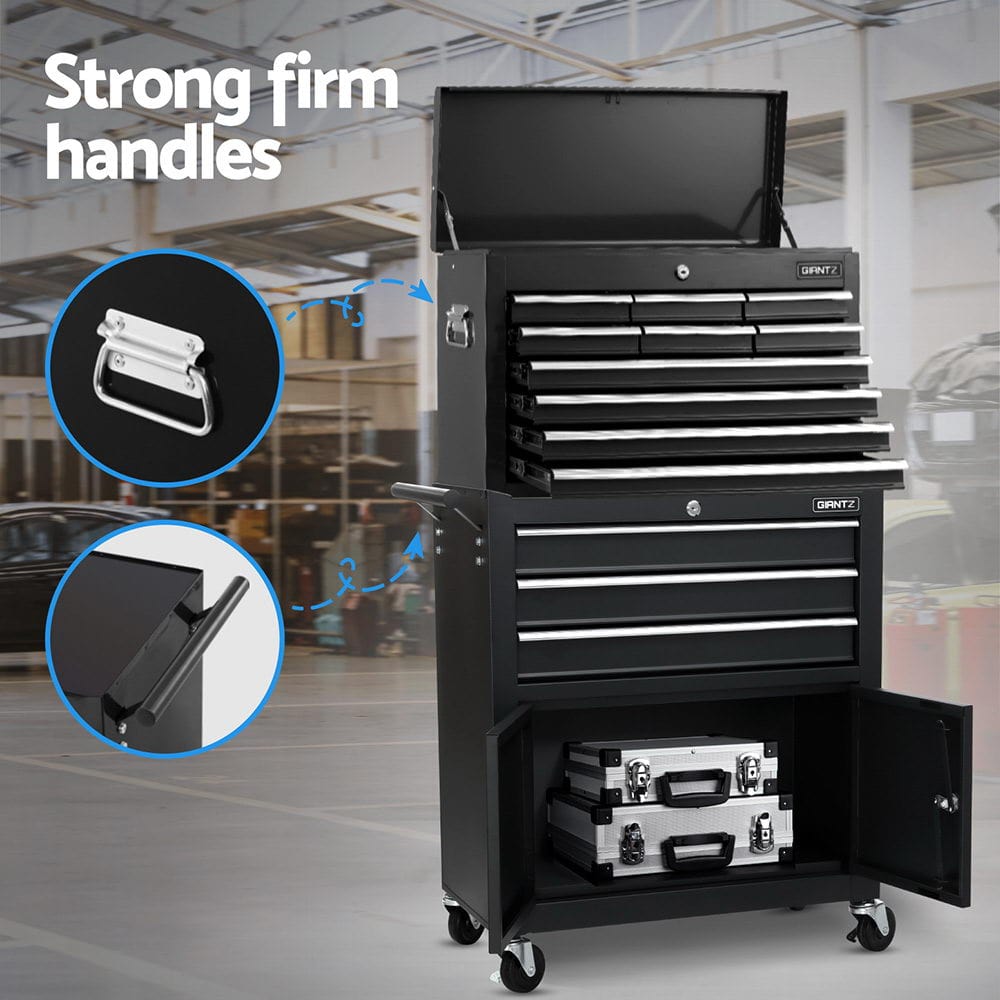 13 spacious drawers in varying sizes to fit all tools