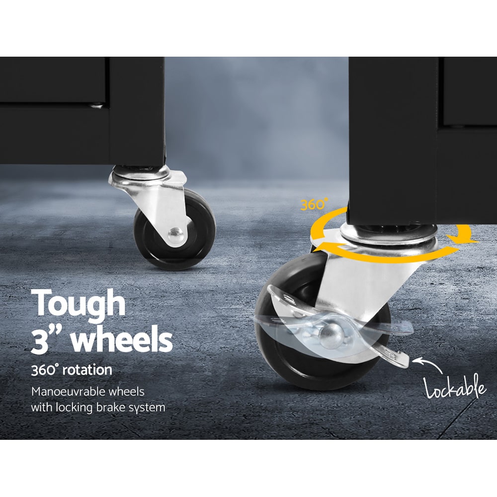 15 Drawer Tool Box Cabinet Chest Trolley – Black