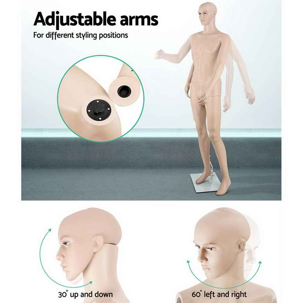 186cm Tall Full Body Male Mannequin – Skin Coloured