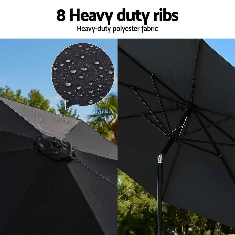 2.9m Outdoor Tilt Umbrella with String Light Black
