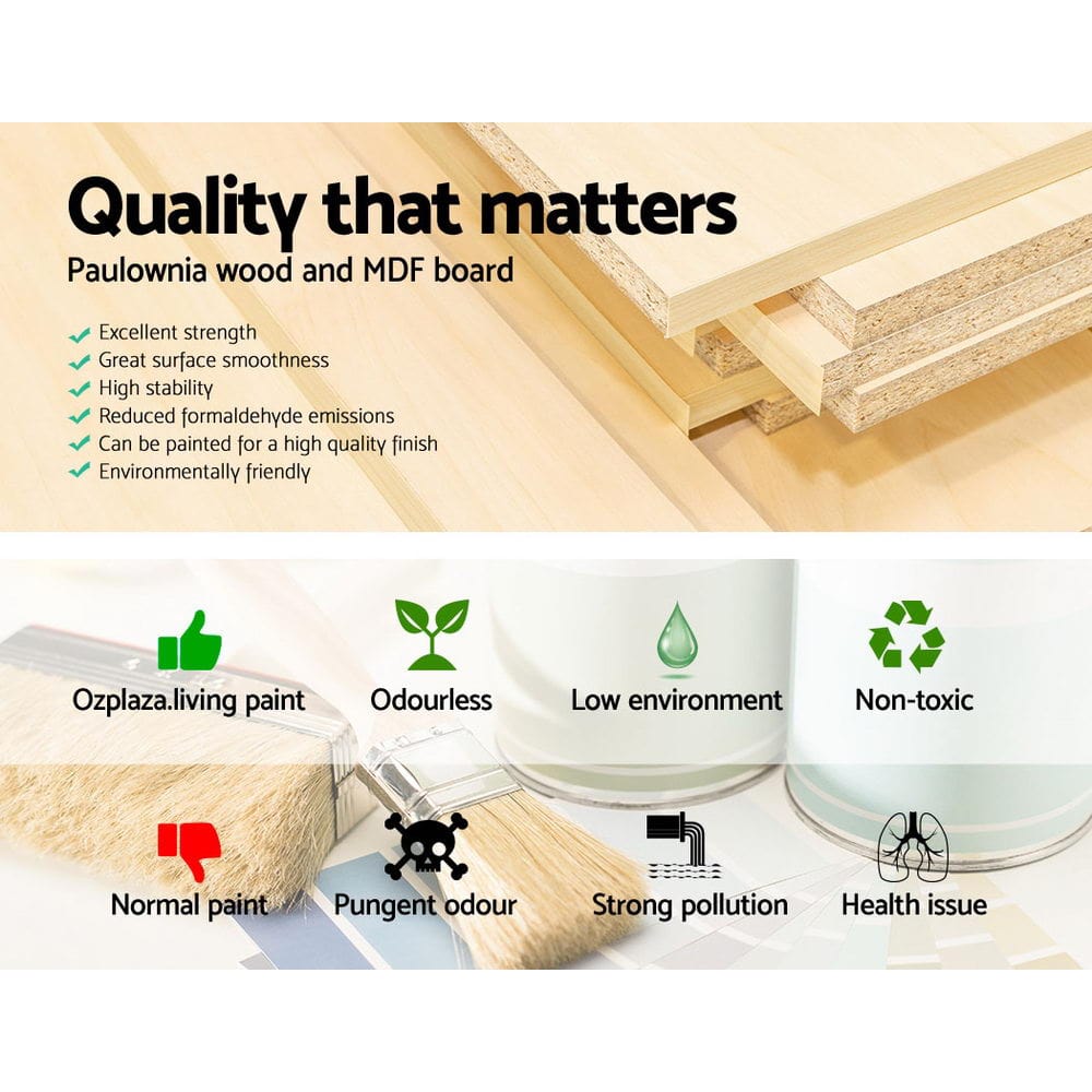 Elevate your bedroom with the Sage Bedside Table, a beautifully handcrafted piece that blends vintage aesthetics with practical storage solutions. Made from sustainable paulownia wood and MDF, this nightstand ensures durable construction, smooth-gliding drawers, and an eco-friendly design—perfect for farmhouse, cottage, or Scandinavian-inspired interiors.