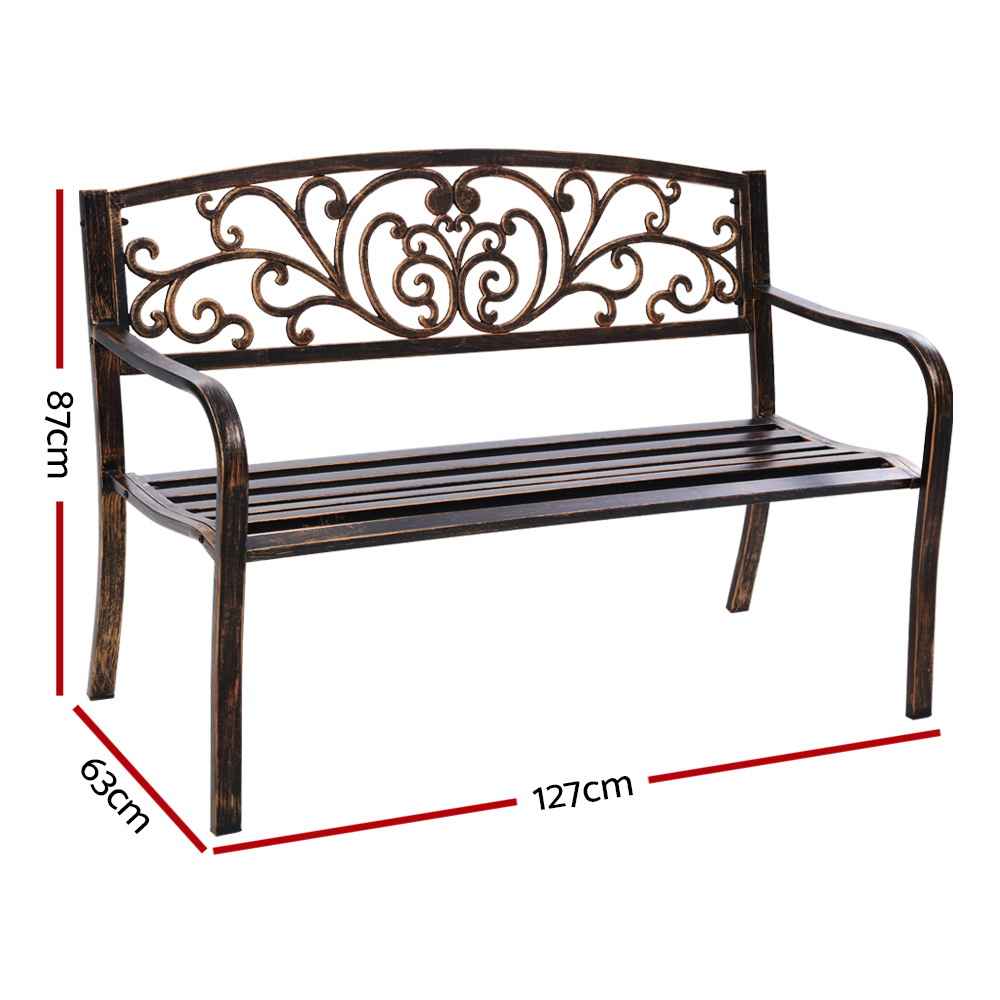With its classic vintage design, this garden bench adds an inviting touch to any setting. The smooth powder-coated finish and graceful lines make it a beautiful focal point in any garden, courtyard, or verandah.