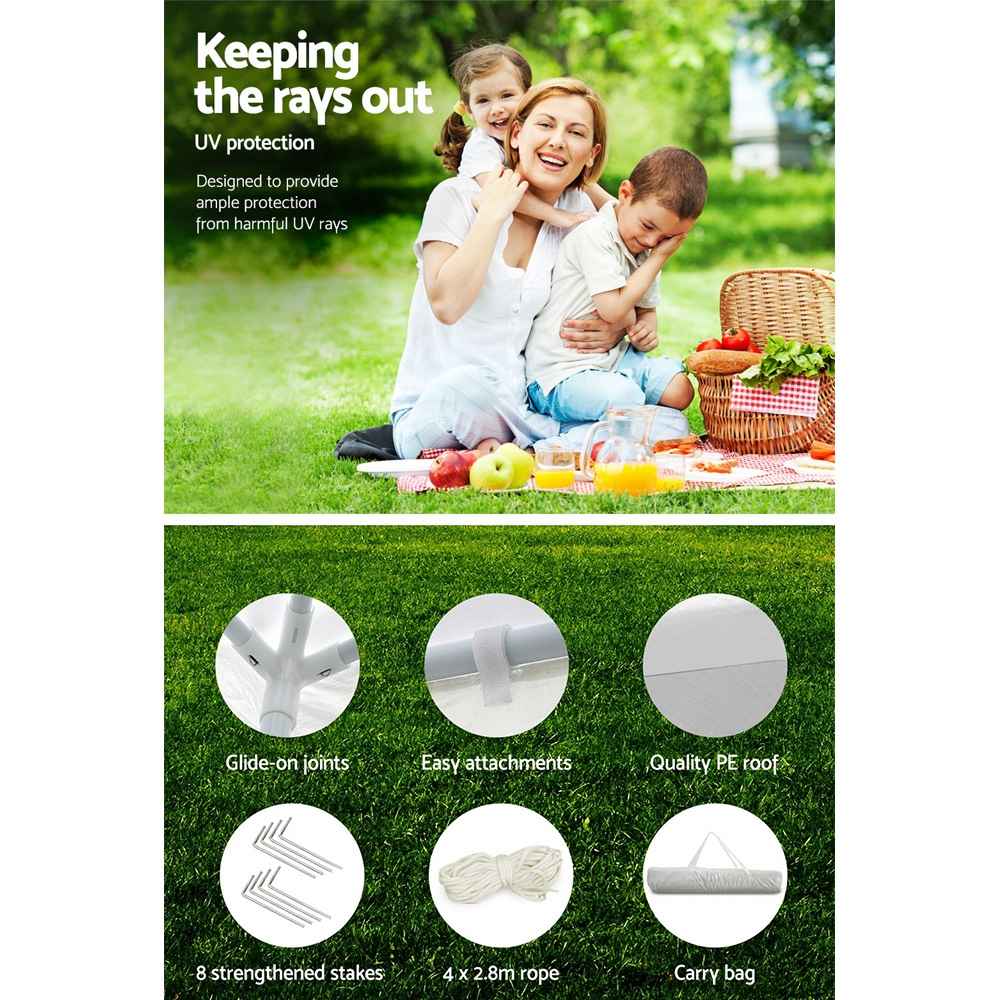 Generous 300cm x 300cm coverage for shade, activities and displays