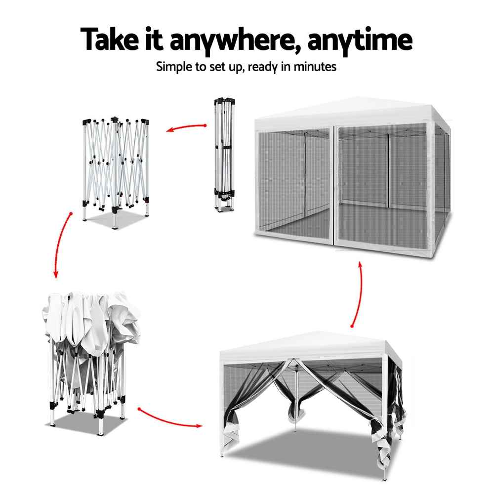 If you need instant shade and weather protection for your backyard, camping trip or weekend market stall, this 3x3m Pop-Up Gazebo delivers reliable cover in minutes. Designed for outdoor Australian conditions, it features a UV-resistant and waterproof Oxford canopy, a strong steel frame and insect-proof mesh walls to keep your space comfortable and protected all day long.