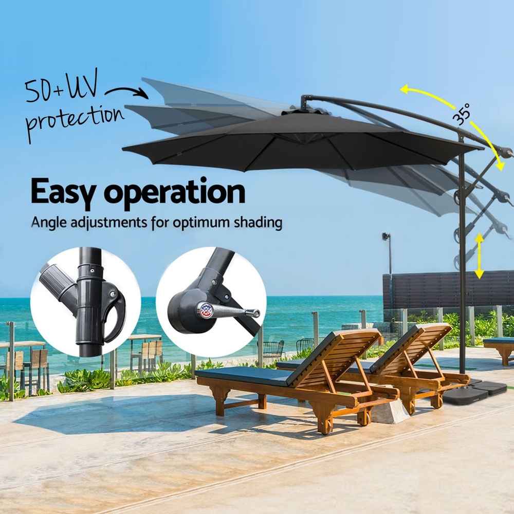 Its robust steel frame and UV50+ water-resistant canopy offer long-lasting protection, while the portable, water-fillable base provides stability and easy repositioning. Whether for the patio, garden, or poolside, this umbrella blends functionality with elegance to create the ultimate outdoor shade solution.