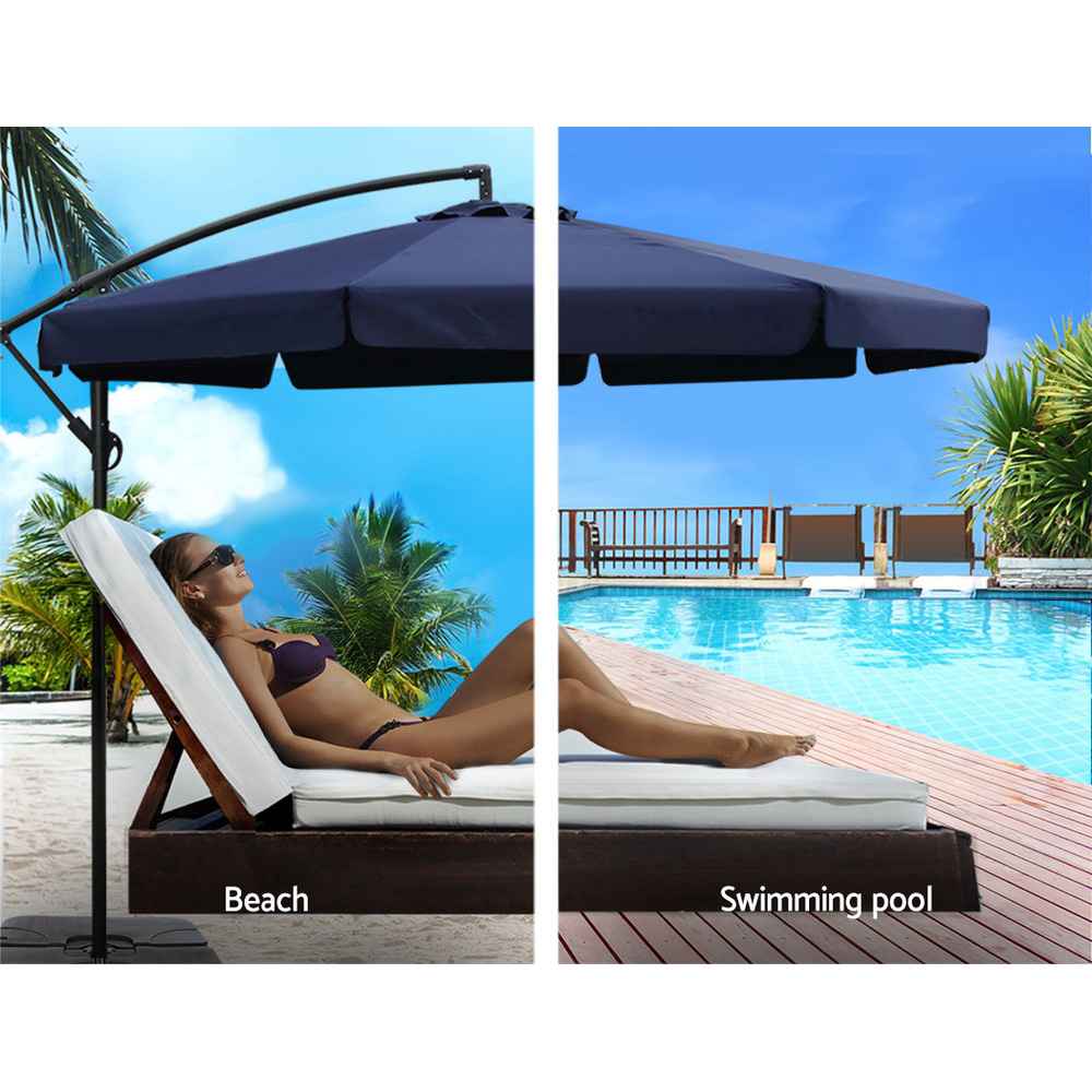 Side Post Outdoor Umbrella – 3m Navy with Base