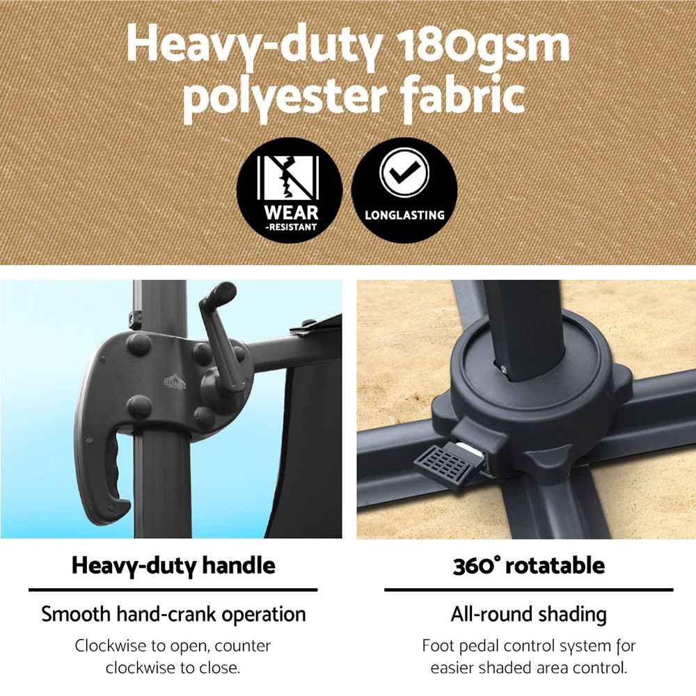3m Outdoor Cantilever Umbrella 360 Degree Tilt Roma Beige