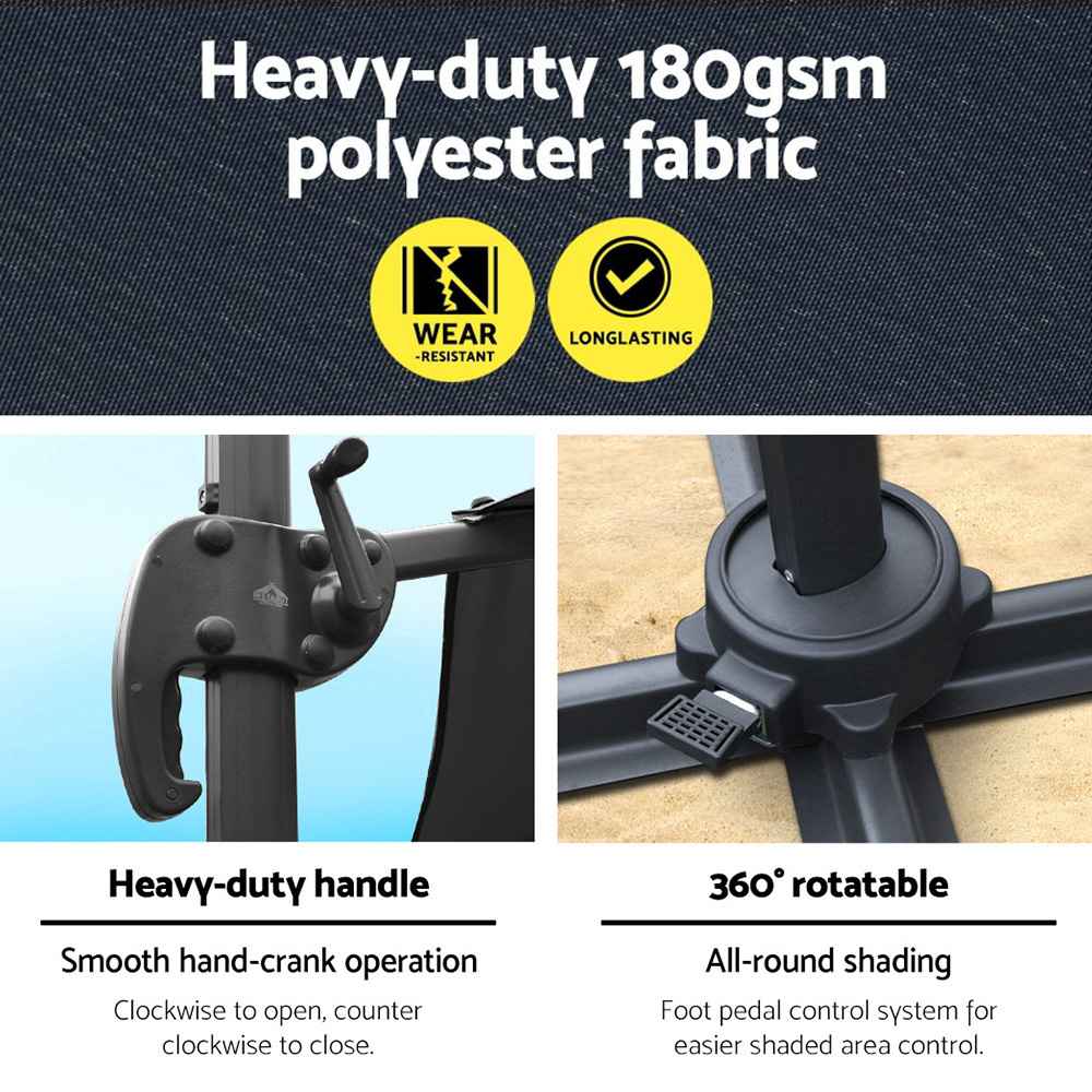 3m Outdoor Cantilever Umbrella 360 Degree Tilt Roma Charcoal