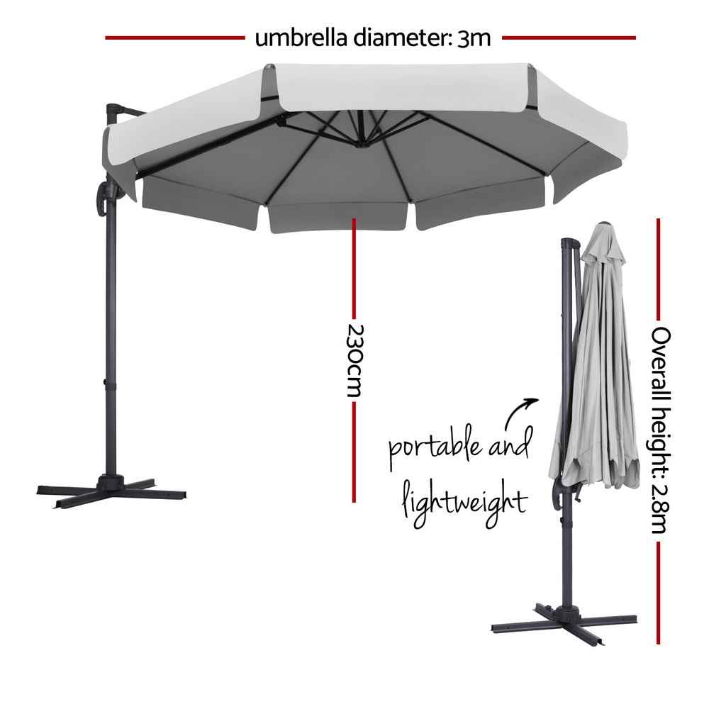 3m Outdoor Cantilever Umbrella 360 Degree Tilt 8 Ribs Roma – Grey
