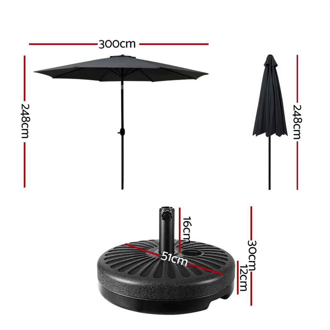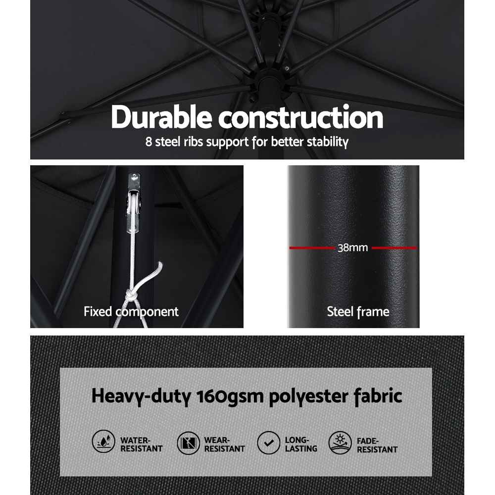 3m Outdoor Tilting Umbrella Pole with Base - Black