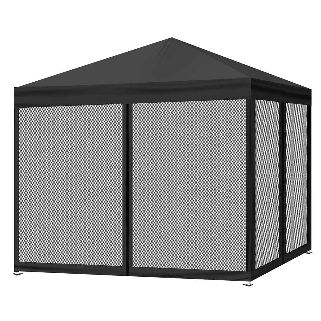3m x 3m Pop-Up Gazebo with Mesh Walls Black