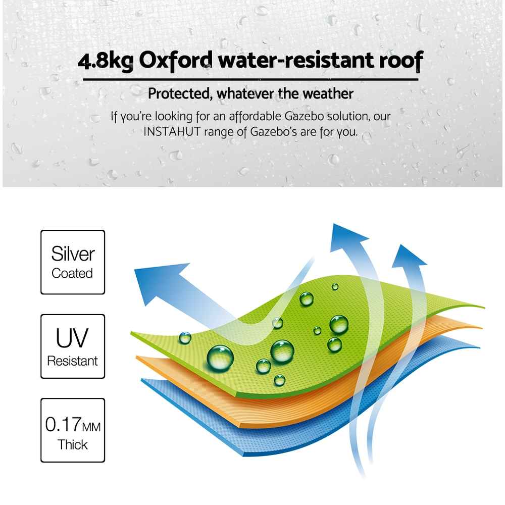 This 4.5 x 3m Pop Up Gazebo is built for Australian outdoor conditions, offering a generous 450 x 300cm coverage area. Made from high-density Oxford fabric with a long-lasting PU coating, it provides dependable UV protection and water resistance, keeping guests, products, and equipment shielded from harsh sun or sudden rain.