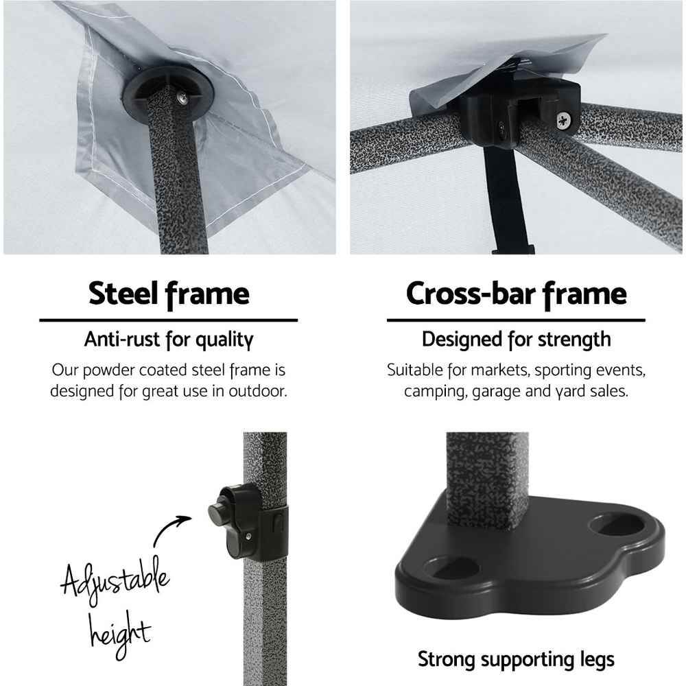 Crafted from high-quality 500D Oxford fabric with a long-lasting PU coating, this gazebo offers excellent resistance against sun and light rain. The UV-treated and water-repellent canopy helps keep guests comfortable during outdoor activities, markets and events.