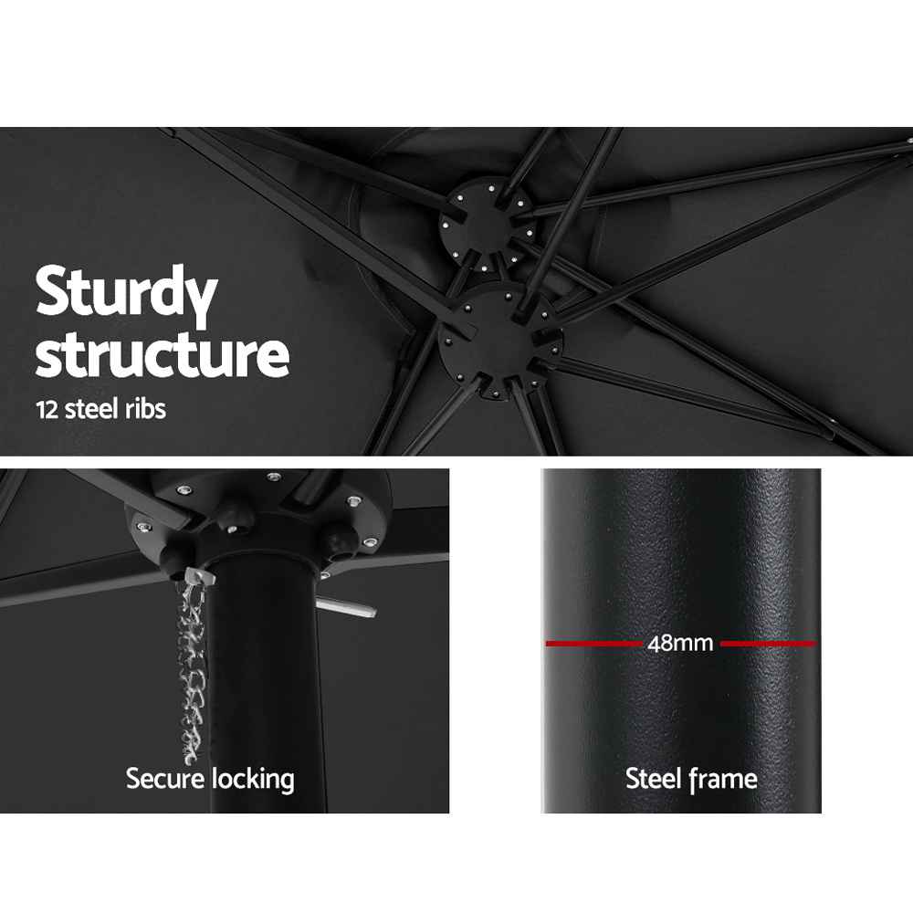 Soak up the sunshine while keeping cool and comfortable under this large centre post outdoor umbrella. Designed with a striking dodecagon canopy and supported by a durable steel frame, this umbrella is perfect for summer relaxation—whether at the beach, in the backyard, or by the pool.