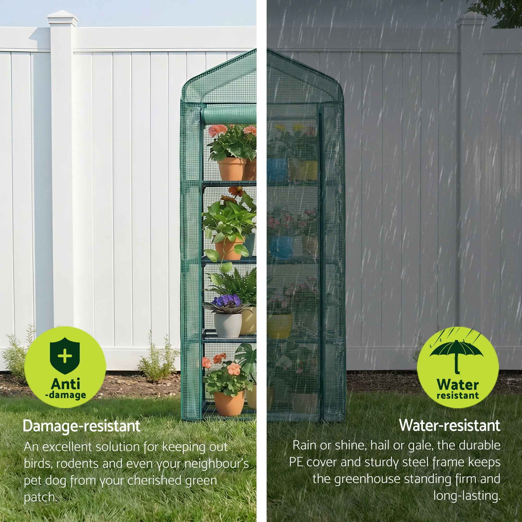 Built for Australian conditions, this all-weather greenhouse helps create a more stable environment for seedlings, herbs, flowers and leafy greens. The durable cover assists with heat retention, while the enclosed design helps protect plants from wind, rain and common garden pests. With four shelves included, it also makes it easier to organise plants neatly in one compact vertical space.