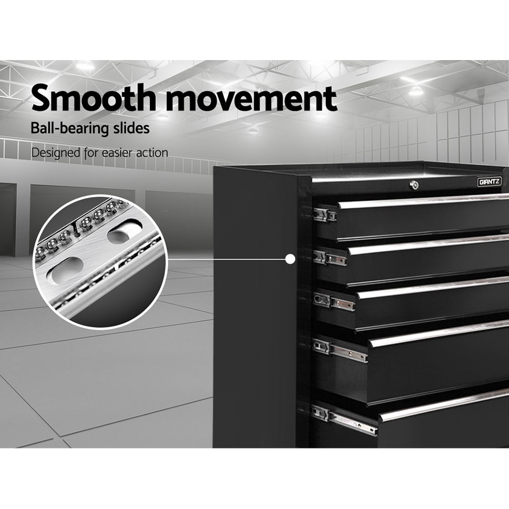 Keep your workshop organised and efficient with this sturdy, lockable 5-drawer tool trolley, designed for easy mobility and secure tool storage. Crafted from heavy-duty steel with a scratch-resistant powder-coated finish, it offers long-lasting durability while protecting your tools. The smooth-gliding ball-bearing drawers and non-slip liners ensure your tools are kept safe, organised, and within easy reach.