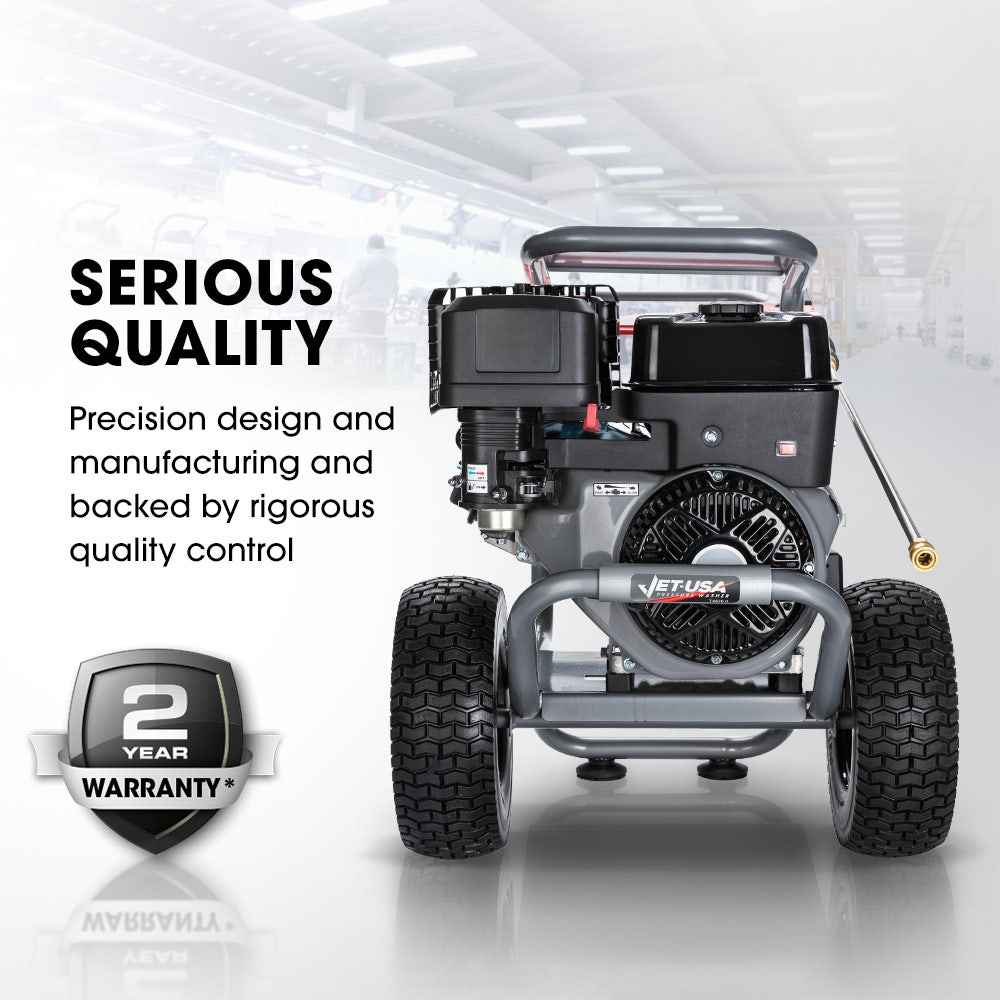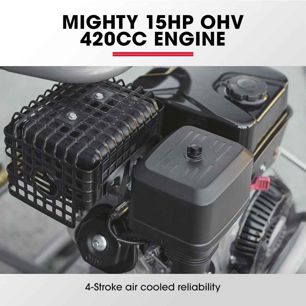 The TX870 Gen II has a thumping 420cc 15HP motor that is reliable as it is powerful. The motor is specifically mated to an RSV series pump from AR / Annovi Reverberi (Italy). This triplex plunger design features bronze conrods and is designed for serious sustained pressure of 4207PSI! With life testing of over 500 hours, this brass head pump is perfect for those in the building or landscaping industry, or any application where time is money.
