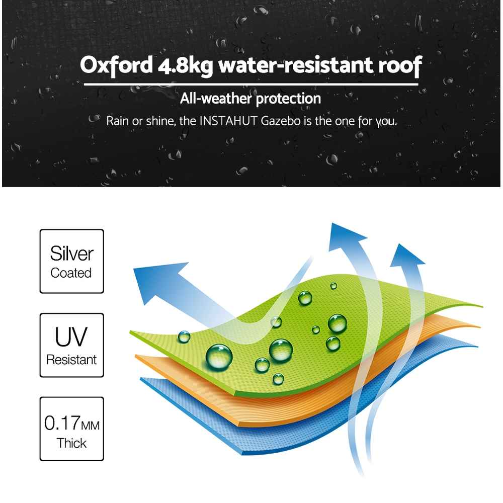 This durable 3×4.5m pop-up gazebo delivers generous coverage of 300 x 450cm, giving you plenty of sheltered space for markets, BBQs, backyard gatherings, camping trips, sporting events, school activities, trade shows and more. Made from high-density PU-coated Oxford fabric, it offers strong UV protection and water resistance to keep you comfortable no matter the weather.