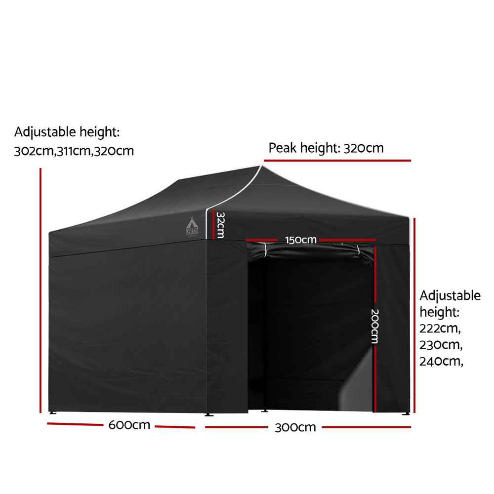 3x6m Pop-Up Gazebo for Events, Markets, Camping and Outdoor Cover