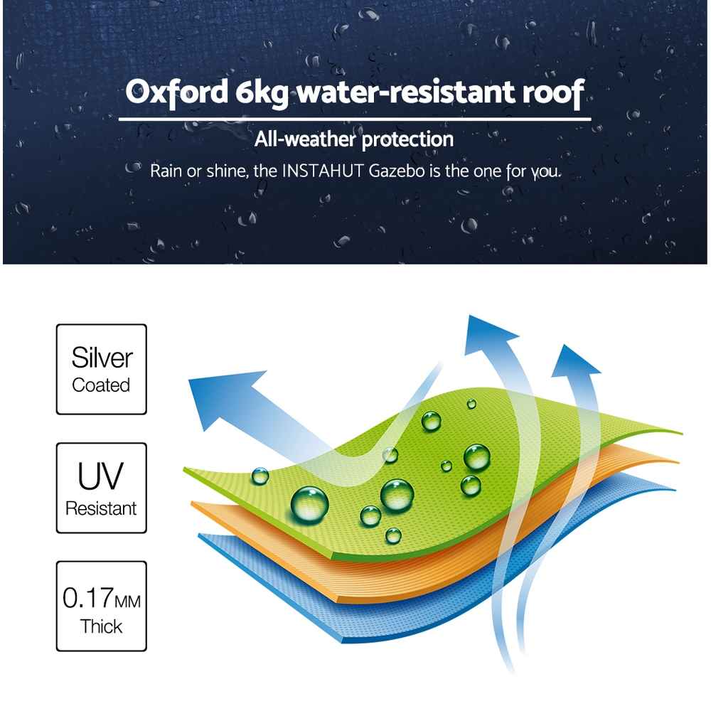 Stay shaded and dry no matter the conditions. The heavy-duty Oxford fabric with PU coating is both UV-resistant and water-resistant, helping protect you and your guests from sun exposure or sudden rain. With a wide 6-metre coverage, your event can continue comfortably outdoors.