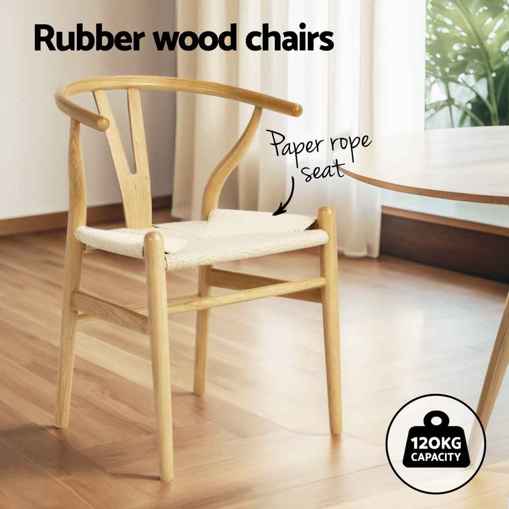 The set also includes four beautifully crafted dining chairs with a natural finish. Featuring a rubber wood frame, paper rope seat, and an ergonomic backrest, these chairs are not only stylish but also provide superior comfort for long dinners and conversations.