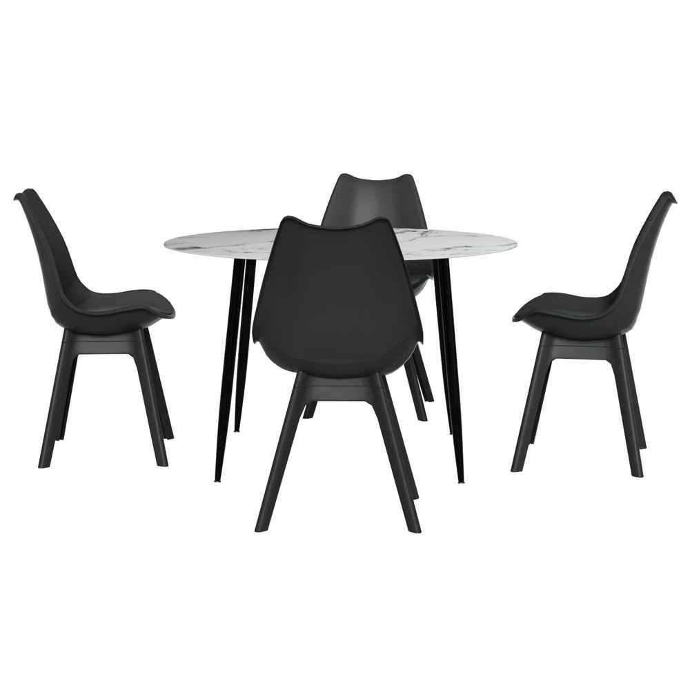 Transform your dining area into a stylish and inviting space with this modern marble dining table and chair set. Featuring a sleek marble-finish tabletop and iconic Replica Eiffel dining chairs, this set delivers both elegance and everyday practicality. Whether you’re hosting dinner with family or entertaining guests, it’s designed to impress while providing lasting comfort and durability.