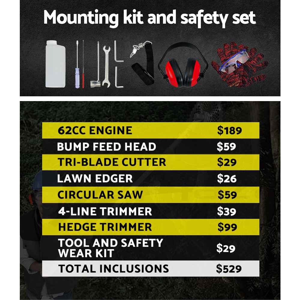 62cc 2-stroke engine – Delivers 2.8kW of power for heavy-duty cutting and trimming.