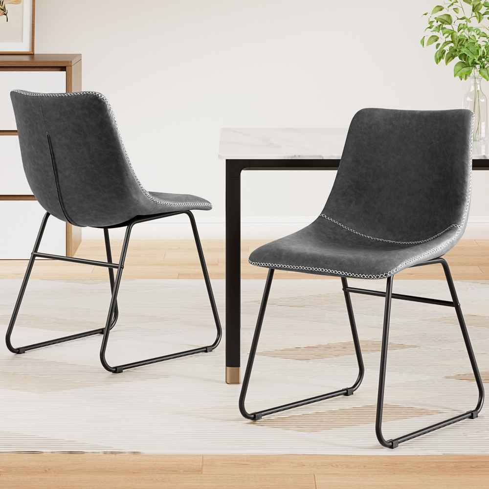 Accent Dining Chairs Retro PU Leather Grey (Set of 2)