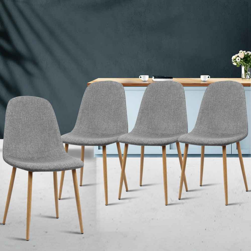 Transform your dining space with this set of four modern fabric dining chairs in timeless light grey. Designed with a perfect blend of comfort, durability, and style, these chairs bring a contemporary edge to your dining room while complementing a wide range of décor styles.