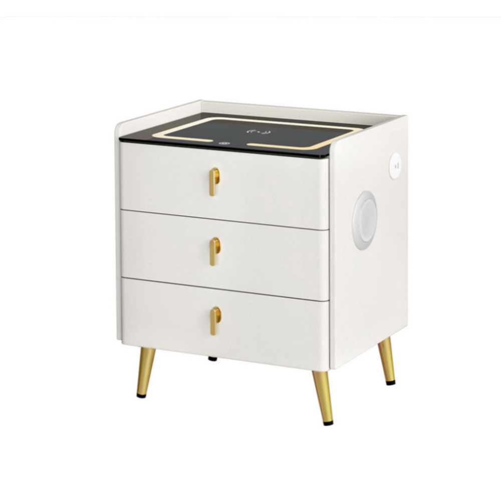 Elevate your bedroom with the Smart LED Bedside Table, a perfect fusion of innovation, elegance, and practicality. Designed for the modern home, this sleek bedside companion brings high-tech convenience right to your fingertips with wireless charging, ambient LED lighting, and built-in Bluetooth speakers—all wrapped in a luxurious finish.
