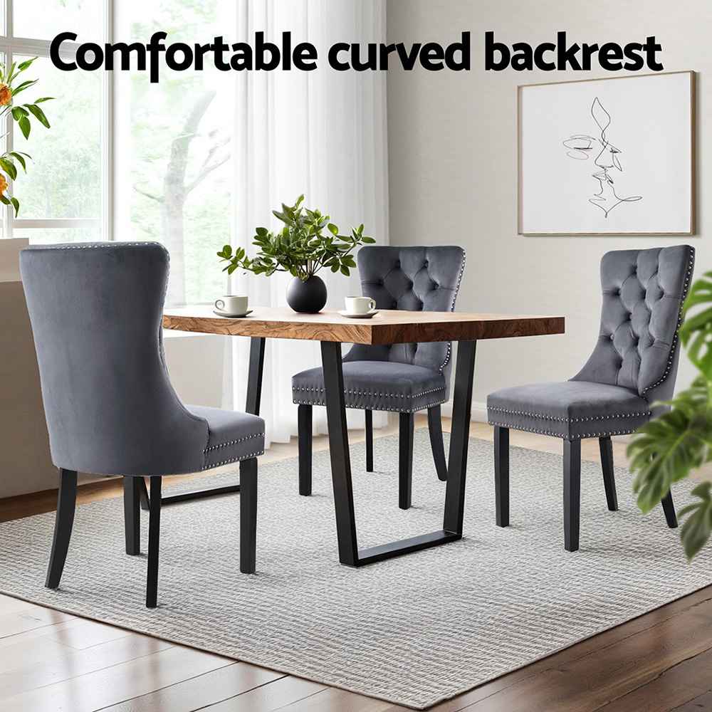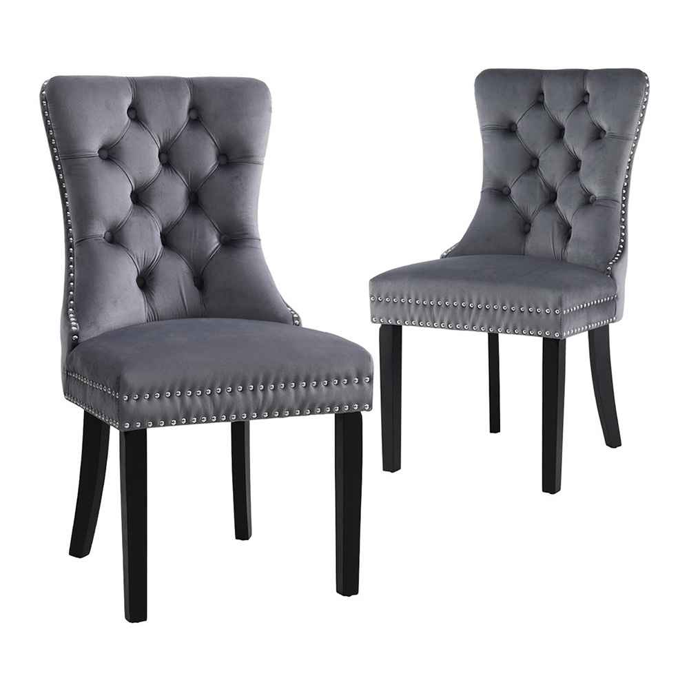 Elevate your dining experience with this set of 2 elegant velvet dining chairs, crafted to bring a touch of classic charm and sophistication to your home. Featuring plush velvet upholstery, a button-tufted backrest, and refined rivet edging, these chairs are designed to impress from every angle.