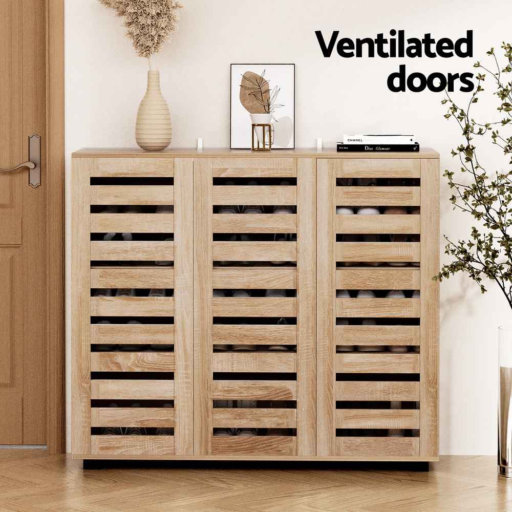 Constructed from premium particleboard with a smooth melamine finish, this shoe cabinet is built for long-lasting performance. Ventilated doors promote airflow to help prevent mould and mildew, keeping your shoes fresher for longer.