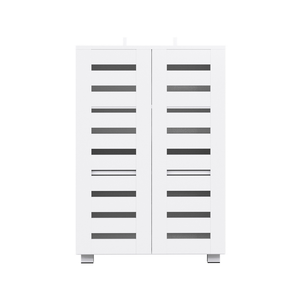Discover seamless organisation with our Alster Shoe Cabinet. Featuring durable construction, a melamine finish, and two compartments with storage space for up to 20 pairs of shoes, it marries style with functionality – transforming clutter into a tastefully organised display in your entryway. With five storage tiers and three adjustable shelves, you can accommodate all different types of shoes and other accessories. The ventilated doors are perfect to encourage proper airflow and prevent mould and mildew, and they’re set on heavy-duty hinges and magnetic door fittings for long-lasting use. Best of all, you purchase includes an anti-tip kit for safety. Enjoy your new organised and tidy hallway with the Alster Shoe Cabinet.
