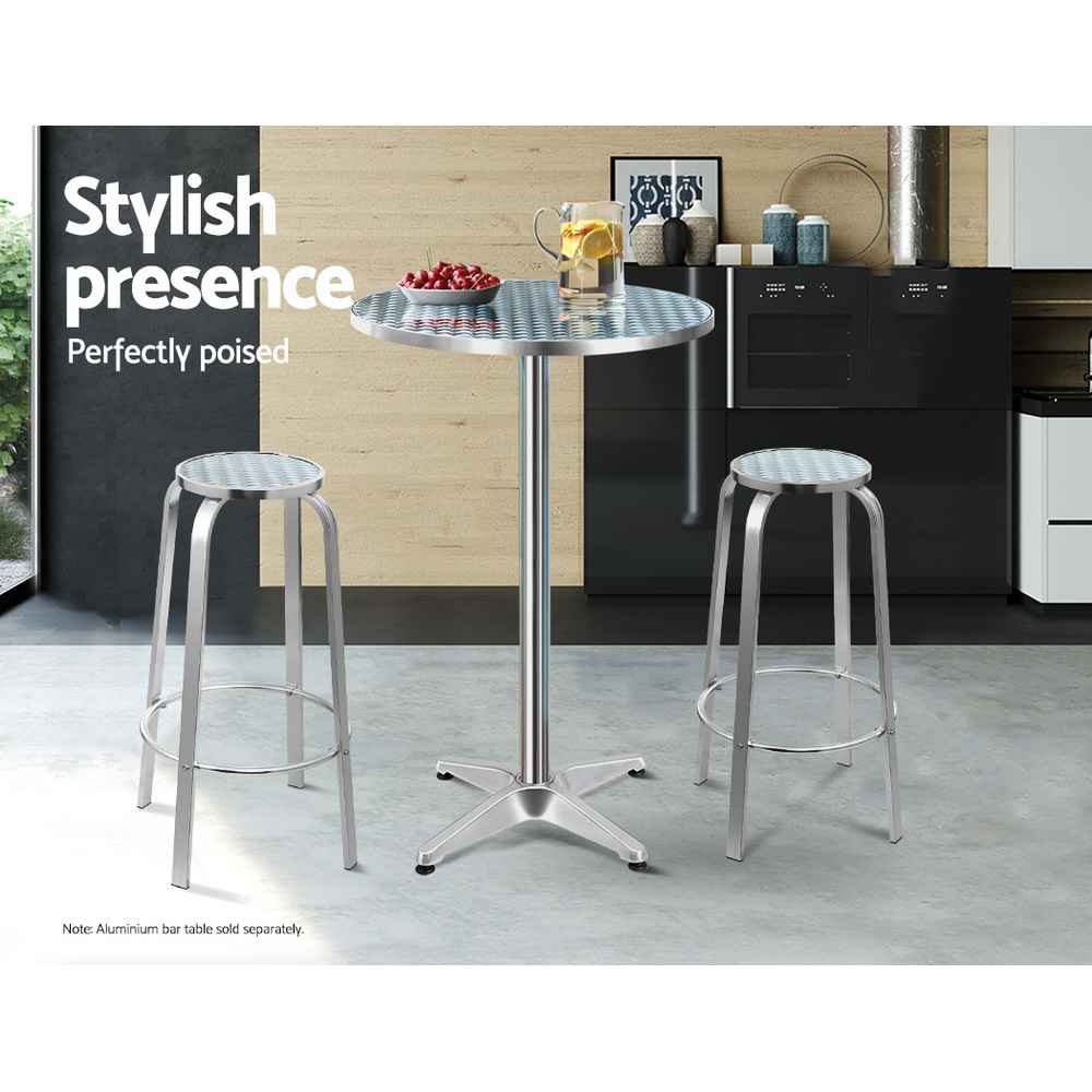 Bring a fresh, modern edge to your home or commercial setting with this durable and visually striking aluminium bar stool set. Order today and enjoy long-lasting comfort and functionality.