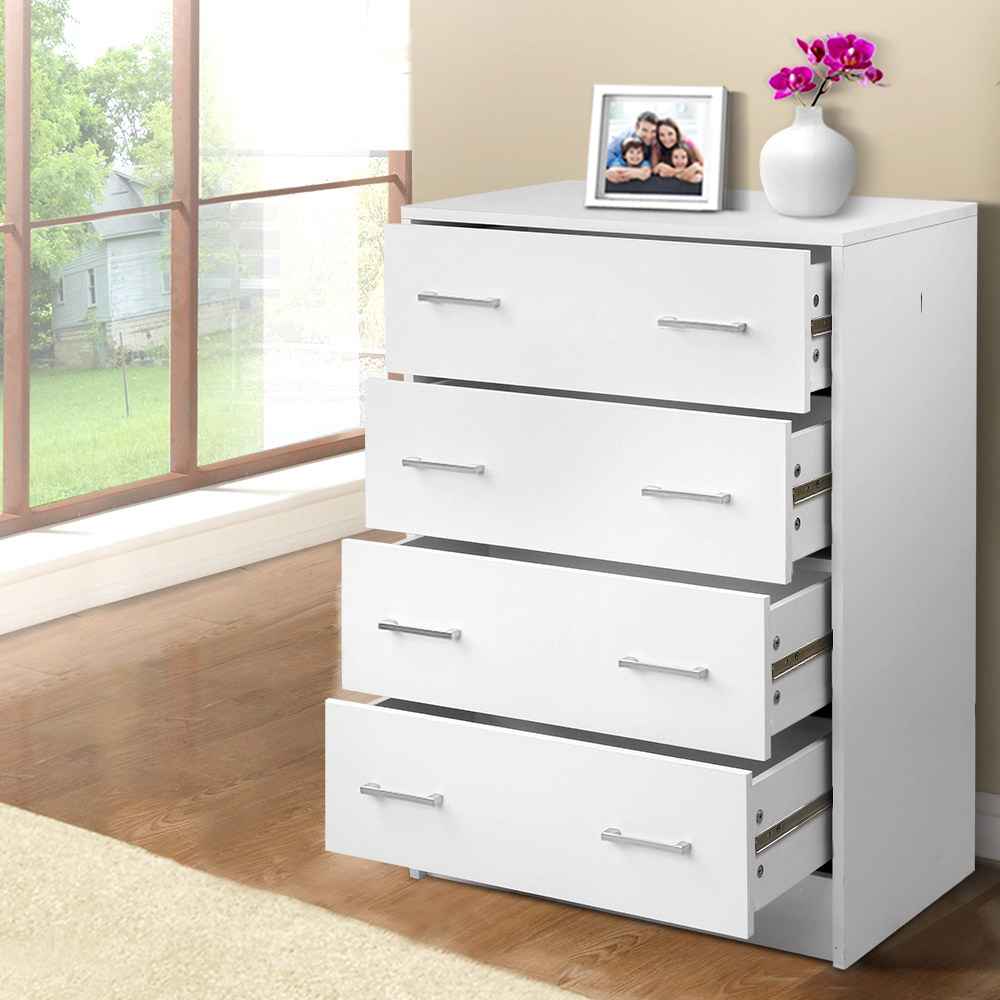 Add practical storage to your home with this 4-drawer tallboy chest, designed to keep bedrooms and living spaces organised without taking up too much floor space. With a clean, contemporary look and a crisp white finish, it blends easily with most Australian home décor styles.