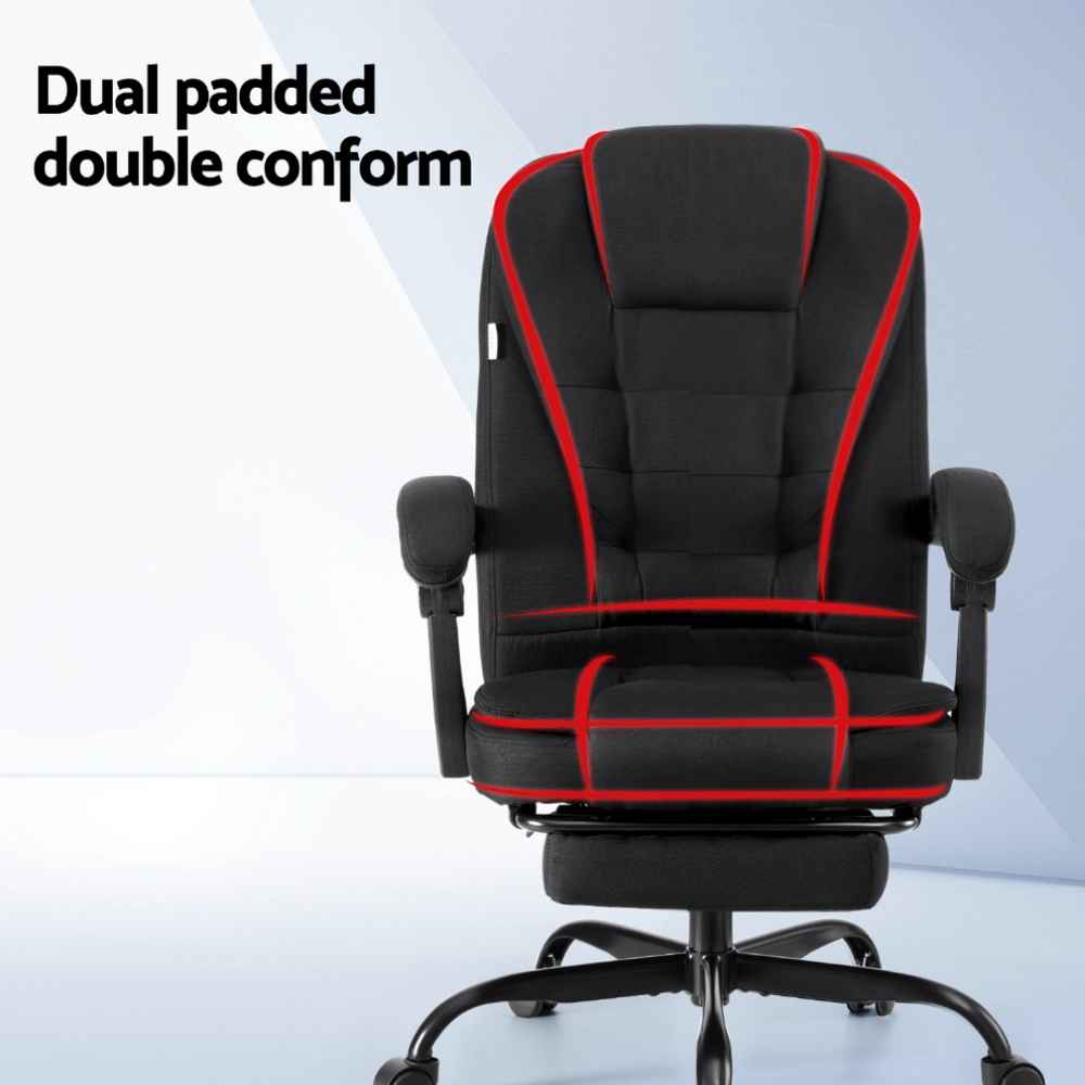 The thick padded seat and backrest provide cushioning support, while padded armrests and a retractable footrest let you relax when you need a break. The ergonomic structure supports your upper body, reducing fatigue and promoting better posture.