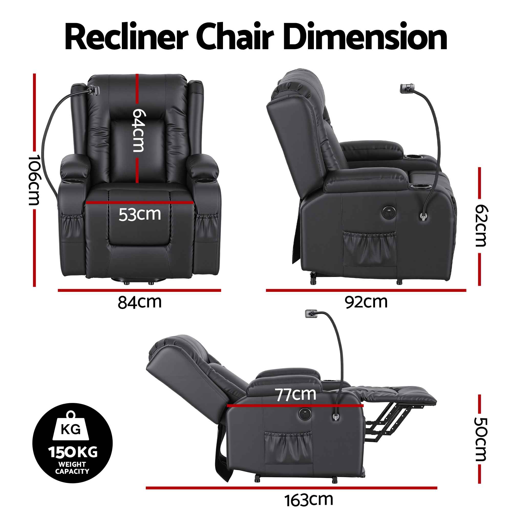 - Weight capacity: 150kg
