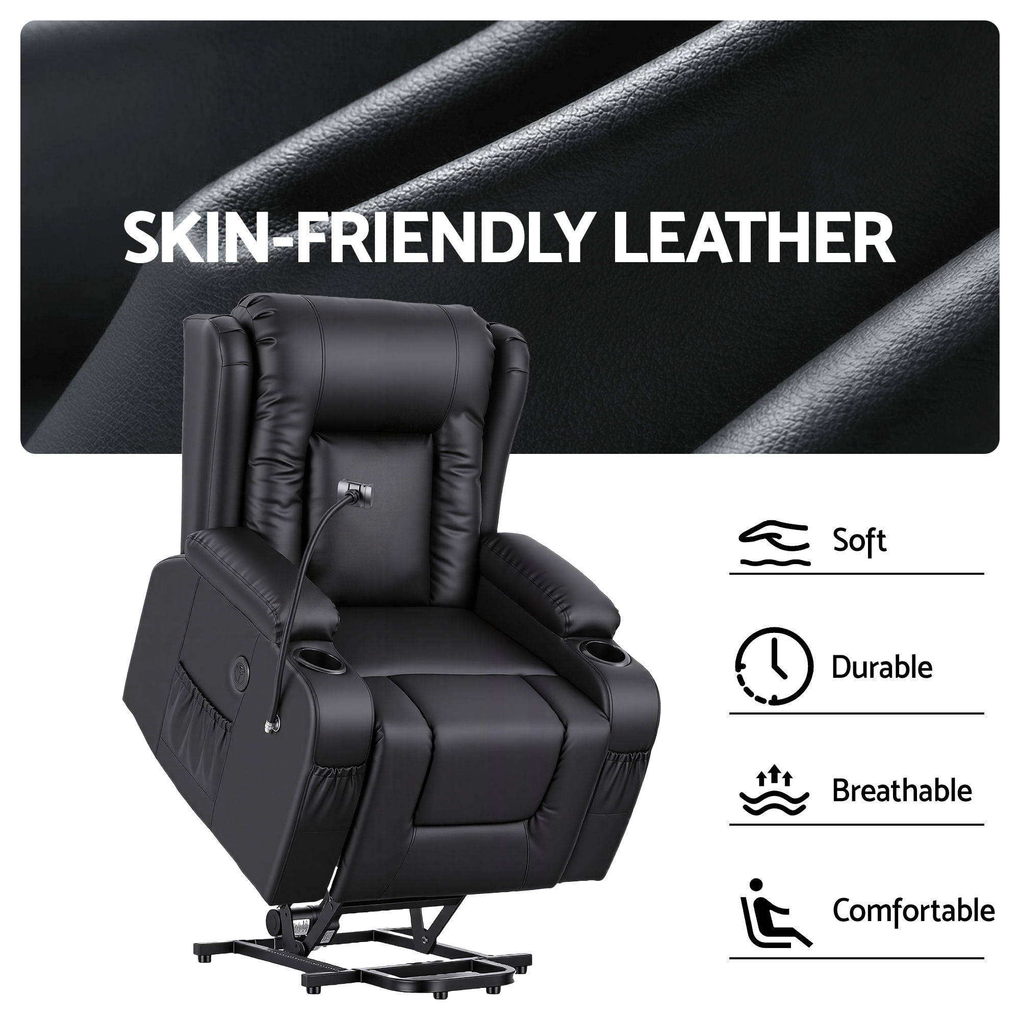 Perfect for the living room, bedroom or private retreat area, this power lift recliner chair combines modern convenience with dependable support. Its premium black PU leather finish, wide seat and sturdy frame make it a smart choice for everyday use in Australian homes.
