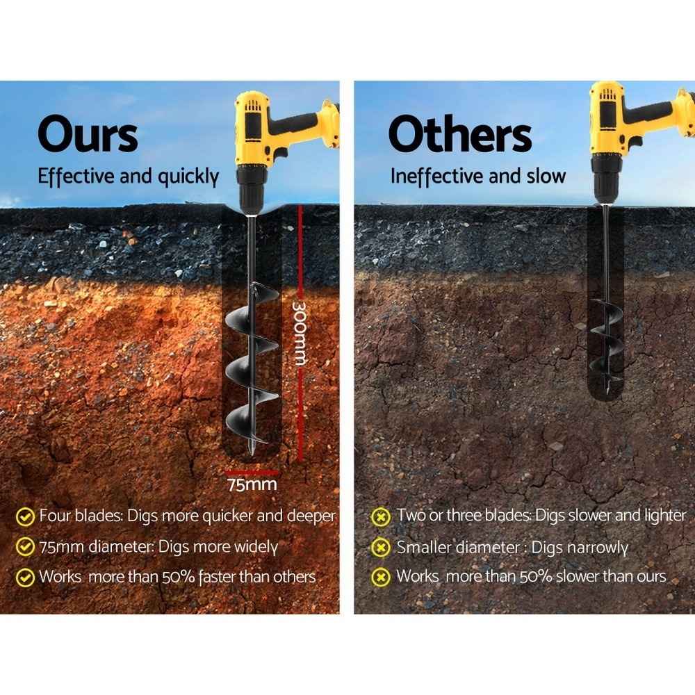 Power Garden Auger Small Earth Planter 75 X 300MM Black