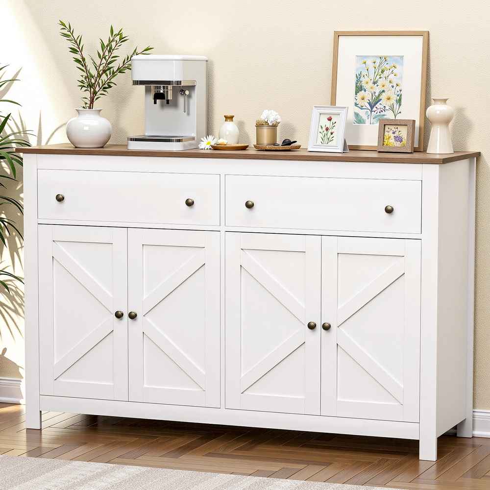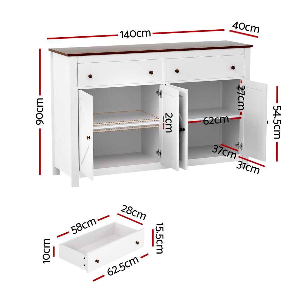Versatile Storage Solution: 2 spacious cabinets and 2 drawers for all your dining essentials, books, or decor.