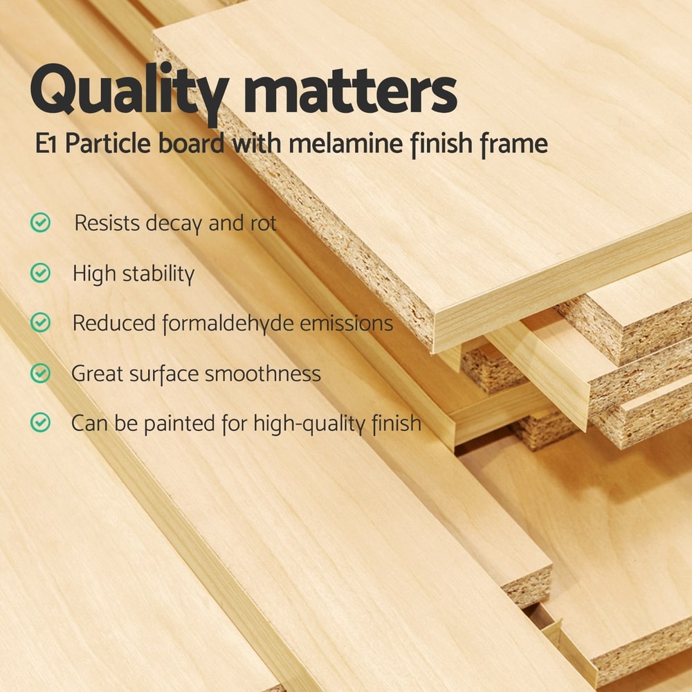Crafted for durability, the sideboard features a high-quality melamine finish and clear paint coating, ensuring a scratch-resistant and easy-to-clean surface. The solid 15mm thick board and sturdy pine wood feet provide long-lasting stability, making it a reliable addition to your home.