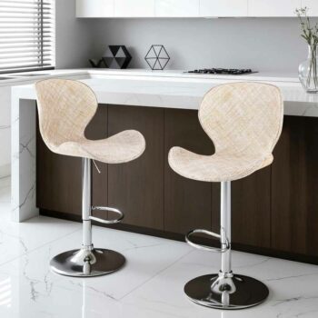 Vivien Woven Velvet Metal Bar Stools Ivory (Set of 2)
