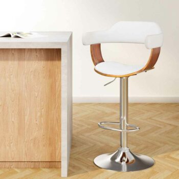 Selina Chrome PU Leather Bar Stool w/Armrest – White