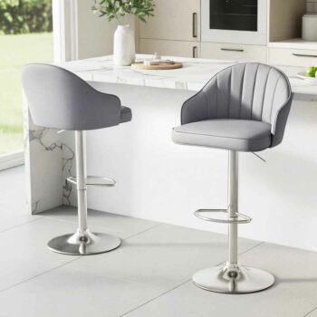 Monroe Shell PU Leather Bar Stools Grey (Set of 2)