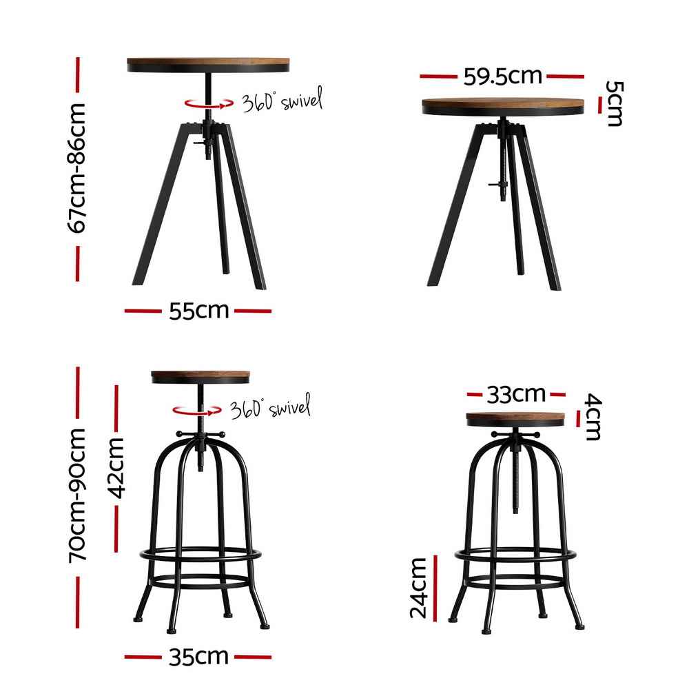 Elevate your dining or entertaining space with the Bar Table Stools Set, designed to combine industrial charm with modern functionality. Crafted from premium elm wood and a reinforced steel frame, this set offers both durability and style, perfect for homes, cafes, kitchens, or pubs.