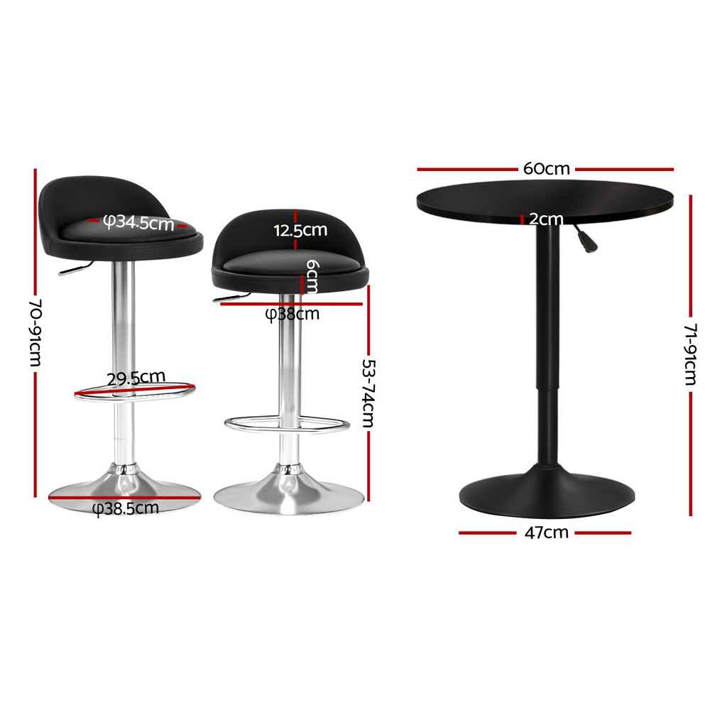 The bar table and matching stools offer a sleek black finish that complements a wide range of interiors. With smooth surfaces that are simple to maintain and a durable steel and MDF construction, this set is built for everyday use.