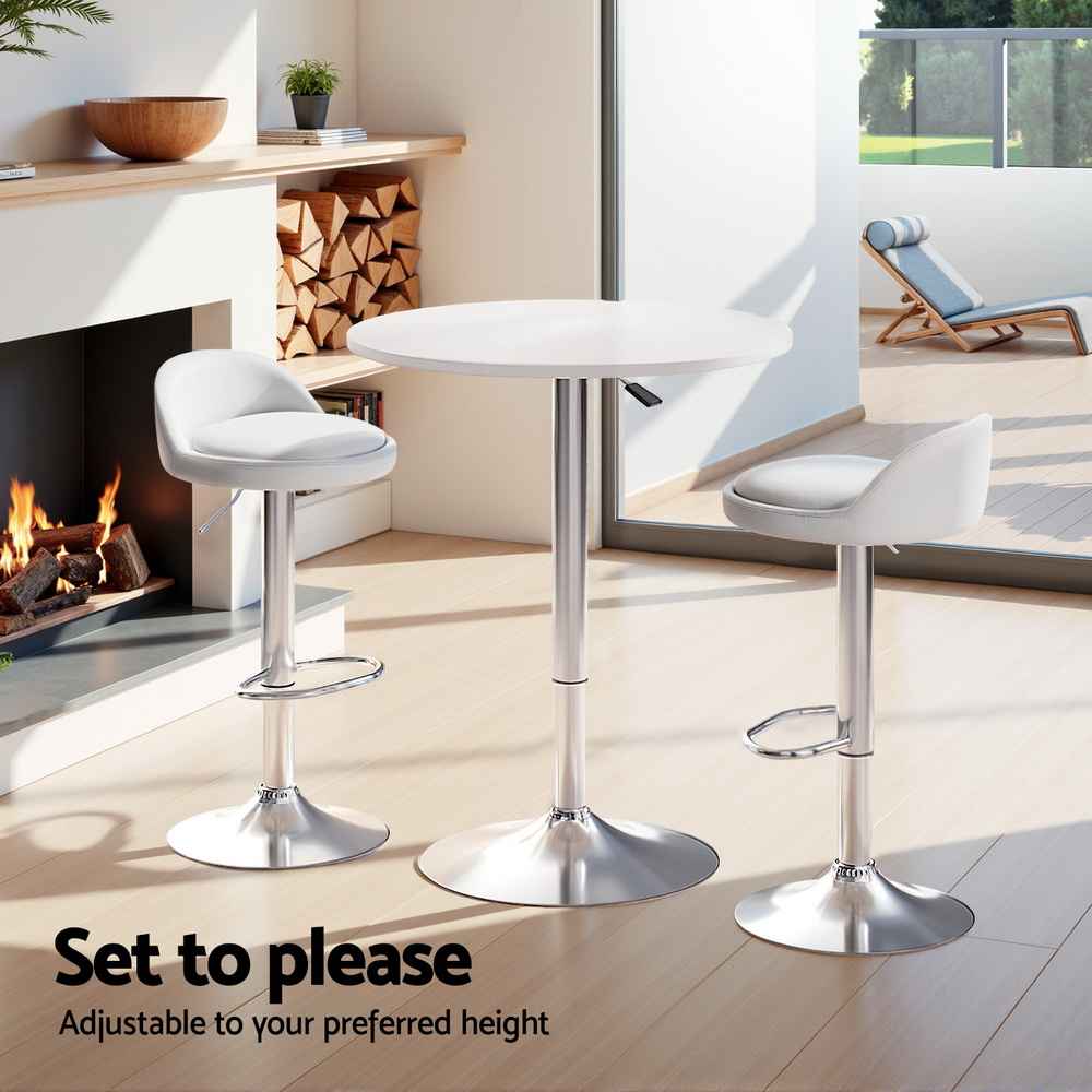 The bar table and matching stools offer a sleek white finish that complements a wide range of interiors. With smooth surfaces that are simple to maintain and a durable steel and MDF construction, this set is built for everyday use.