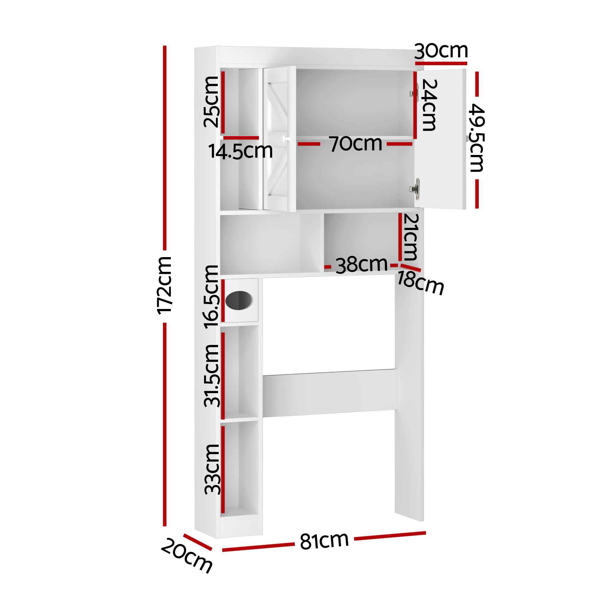 Overall dimensions: 81cm x 20cm x 172cm